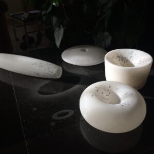 Mijn onderzoek resulteert in series kunstwerken van steen die gaan over energie, frequentie, trilling, geluid, licht en……?
